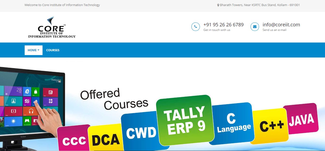 Core Institute of Information Technology hopes to be pre-eminent in "Industrial Training" with universal perspective. We provide the most demanding IT Courses like PGDCA, DCA, Desktop Publishing, Tally, SAP, PHP, JAVA, E-Commerce Platforms, ASP .NET, MS Office, Jquery, Node JS at one stop - Core Institute of Technology.
